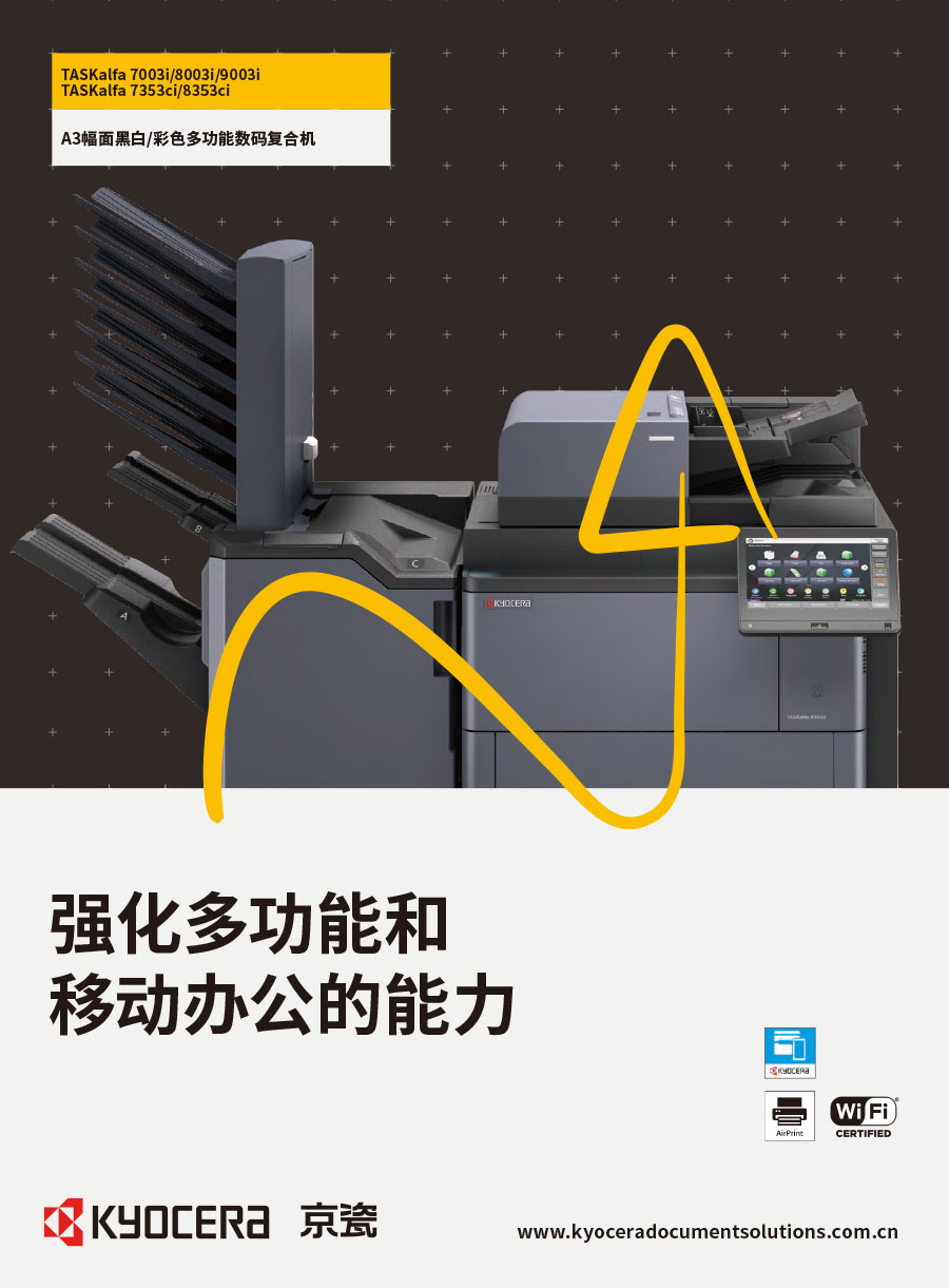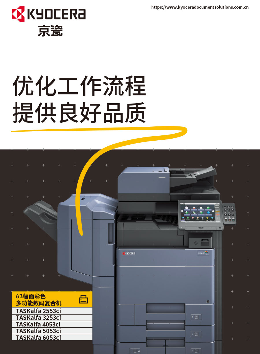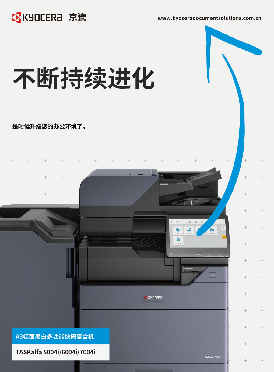 京瓷辦公信息系統(tǒng)(中國)有限公司主要負責彩色和黑白數(shù)碼復合機、彩色和黑白數(shù)碼激光打印機、生產(chǎn)型彩色噴墨印刷系統(tǒng)、辦公解決方案等系列辦公自動化設(shè)備的銷售。京瓷辦公設(shè)備將一如既往延續(xù)ECOSYS理念,始終站在時代前沿,以科技服務(wù)社會,堅持開發(fā)更能滿足時代需求、更為綠色的新銳產(chǎn)品,使用戶都能夠從中獲得更大的利益。