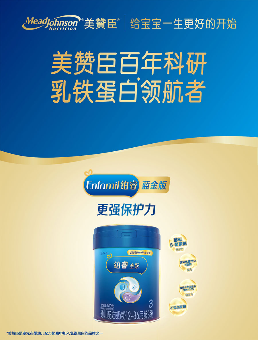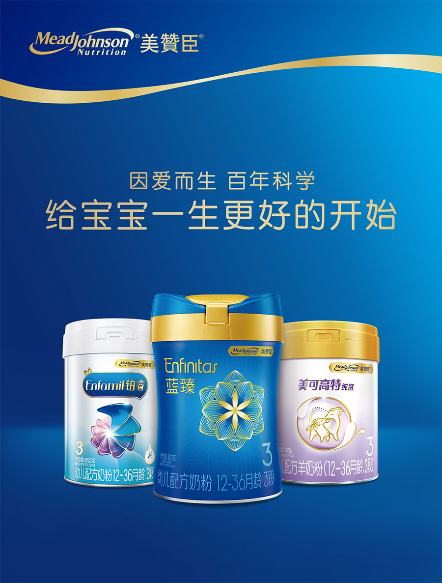 美贊臣創(chuàng)立于1905年,自創(chuàng)立起始終堅持以科學為本進行產品研發(fā)和創(chuàng)新,為全球嬰幼兒提供科學營養(yǎng),致力于“給寶寶一生最好的開始”。1993年,美贊臣正式進入中國,在廣州設立生產基地。植根中國近三十載,陸續(xù)推出藍臻、鉑睿、安兒寶、全躍、親舒、早產兒出院后配方、無乳糖配方等消費者熟悉的嬰幼兒配方產品,每天守護寶寶健康成長,受到廣大中國消費者的歡迎和喜愛。