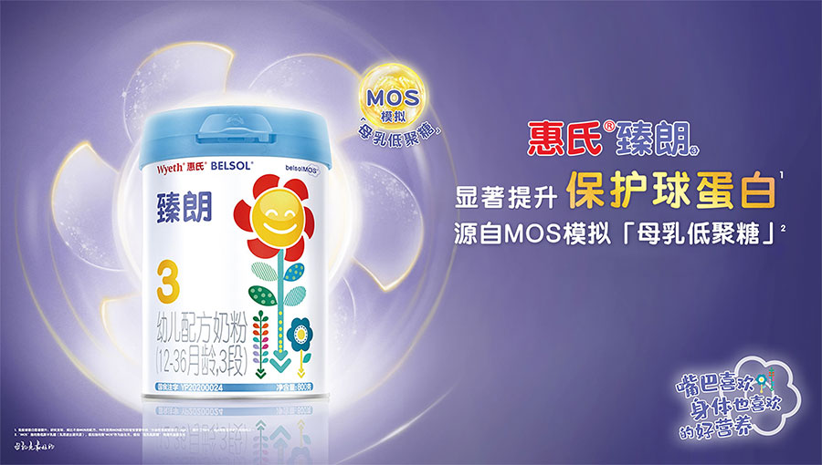 在中國市場,惠氏營養(yǎng)品有多款產(chǎn)品滿足消費(fèi)者的不同需求,包括愛爾蘭原裝進(jìn)口的啟韻tm和啟賦®系列,瑞士生產(chǎn)并進(jìn)口的惠氏®鉑臻®3、惠氏®鉑臻®幼兒樂tm3,以及滿足孕期和哺乳期媽媽不同階段營養(yǎng)所需的Materna®系列等品牌,從懷孕的第一天起關(guān)懷媽媽和寶寶人生最初最重要的一千天。嬰幼兒配方奶粉是惠氏營養(yǎng)品最重要的產(chǎn)品線,其核心是以科學(xué)創(chuàng)新和實(shí)踐研究為基礎(chǔ)的配方。