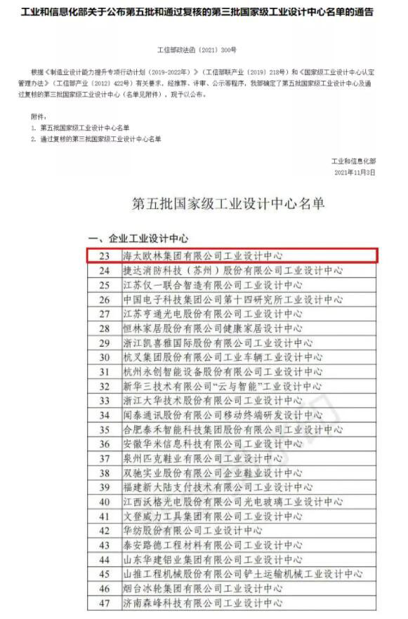 國家級!海太歐林集團喜提“國家級工業(yè)設(shè)計中心”