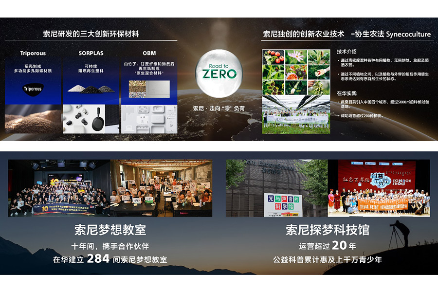 在發(fā)展各項(xiàng)業(yè)務(wù)的同時(shí),索尼矢志不渝履行對(duì)地球的“責(zé)任”,并通過技術(shù)和業(yè)務(wù)為地球做“貢獻(xiàn)”。在“走向零負(fù)荷”的環(huán)境目標(biāo)指導(dǎo)下,在中國(guó),索尼已從2020-2022財(cái)年連續(xù)實(shí)現(xiàn)100%可再生能源用電,并將多樣創(chuàng)新的環(huán)保技術(shù)成果引入中國(guó):包括將多樣植物高密度混種以回歸自然生態(tài)的“協(xié)生農(nóng)法”,索尼獨(dú)自開發(fā)的三大創(chuàng)新環(huán)保材料SORPLARSTM,TriporousTM,OBM等等。