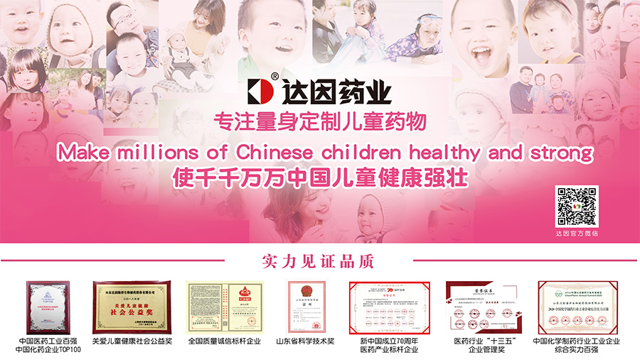 達(dá)因藥業(yè)始終堅持“量身定制兒童藥物”和“質(zhì)量源于設(shè)計”的研發(fā)理念,致力打造一流的兒童專用藥研發(fā)平臺,建成了國內(nèi)首個兒童藥物研發(fā)技術(shù)中心,投資近億元成立專注高端兒童制劑研發(fā)的北京達(dá)因高科兒童藥物研究院,形成北京、山東榮成“二地一體化”的科研機(jī)構(gòu)布局和人才、資源、技術(shù)、產(chǎn)業(yè)化“四位一體”的協(xié)同創(chuàng)新機(jī)制。先后獲批山東省企業(yè)技術(shù)中心、兒童藥物制劑山東省工程研究中心、山東省兒童藥物制劑工程實(shí)驗(yàn)室、山東省新型兒童藥物技術(shù)創(chuàng)新中心、山東省博士后創(chuàng)新實(shí)踐基地和山東省高層次人才工作站等科研創(chuàng)新和人才創(chuàng)新平臺。聚集了包括泰山產(chǎn)業(yè)領(lǐng)軍人才、千人專家、特聘專家等在內(nèi)的一大批專業(yè)技術(shù)人才,搭建了系統(tǒng)的兒童藥物關(guān)鍵技術(shù)平臺,實(shí)現(xiàn)了吸入制劑、口溶膜劑、矯掩味技術(shù)、緩控釋制劑、直腸給藥等技術(shù)創(chuàng)新。5個項(xiàng)目獲國家“十三五”重大新藥創(chuàng)制專項(xiàng)支持,全部按期結(jié)題,超額完成各項(xiàng)技術(shù)指標(biāo)。“特色兒童藥關(guān)鍵技術(shù)體系構(gòu)建及規(guī)模產(chǎn)業(yè)化”項(xiàng)目獲山東省科技進(jìn)步二等獎。