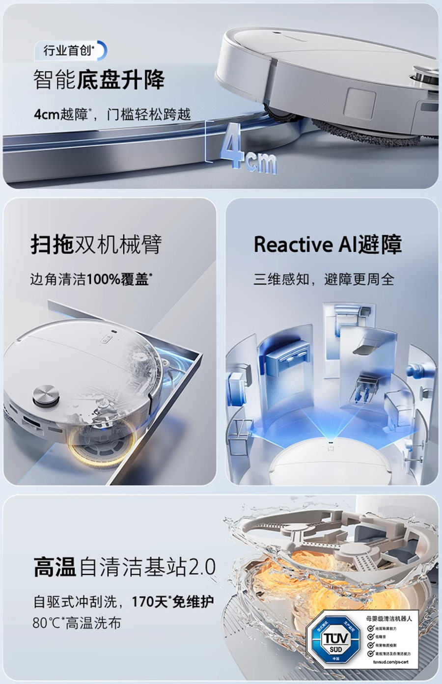 通過(guò)領(lǐng)先的激光雷達(dá)與導(dǎo)航算法,讓產(chǎn)品更聰明:SLAM建圖與定位、導(dǎo)航與運(yùn)動(dòng)控制、AI避障與脫困。