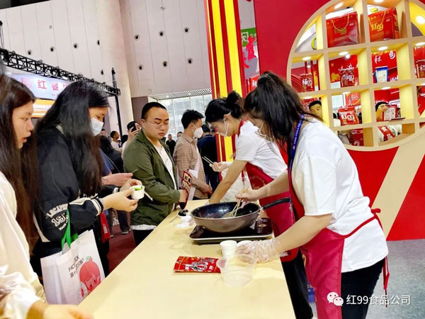 在紅九九品牌服務(wù)商-重慶貓頭鷹科技公司展區(qū),工作人員現(xiàn)場展示并詳細說明具體操作流程,只需兩步就能享用地道重慶火鍋。省時、省事、省心、方便、快捷是它的優(yōu)點;同時,紅99牌濃縮火鍋底料更是眾多家庭、餐廳、火鍋餐館、酒店選擇的方便型調(diào)味料,也是饋贈親友之佳品。希望可以將這份美味分享給全國乃至全世界的朋友們,即使在他鄉(xiāng)也能吃到正宗的重慶火鍋。