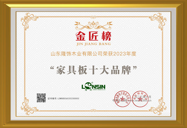 品牌加冕,榮耀所歸!隆飾板材斬獲“2023年度家具板十大品牌”榮譽(yù)獎項(xiàng)