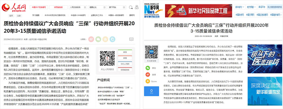 新華網(wǎng)《質(zhì)檢協(xié)會持續(xù)倡議廣大會員響應“三保”行動并組織開展2020年3·15質(zhì)量誠信承諾活動》