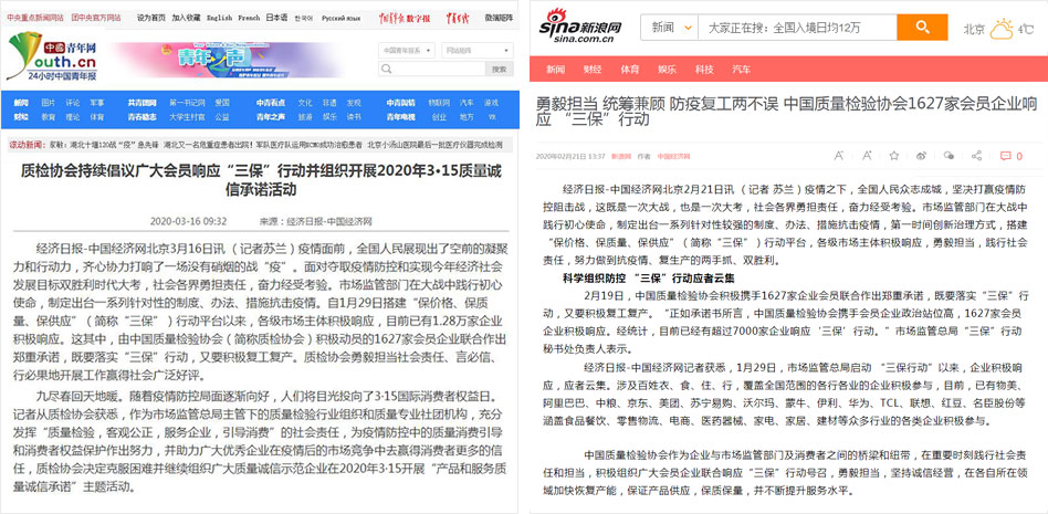 搜狐網(wǎng)《中國質(zhì)量檢驗協(xié)會攜手廣大會員企業(yè)響應“三保”行動》